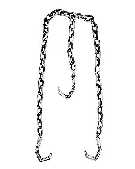 Add some creepy details to your Halloween scene when you use the 3 Hooks Chain to decorate. This silver and black, plastic chain features 3 hook details that are good for hanging your next victim.