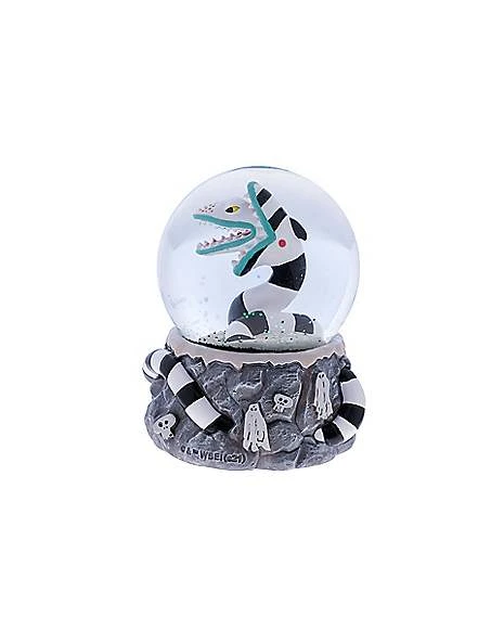 Shake things up this Halloween with your home decor when you decorate with this officially licensed Beetlejuice Worm Snow Globe. This stylish Beetlejuice snow globe is sure to make any Beetlejuice fan excited and is just what you need to begin to get your home in the holiday spirit and will always remind you of Beetlejuice, Beetlejuice, Beetlejuice!Â