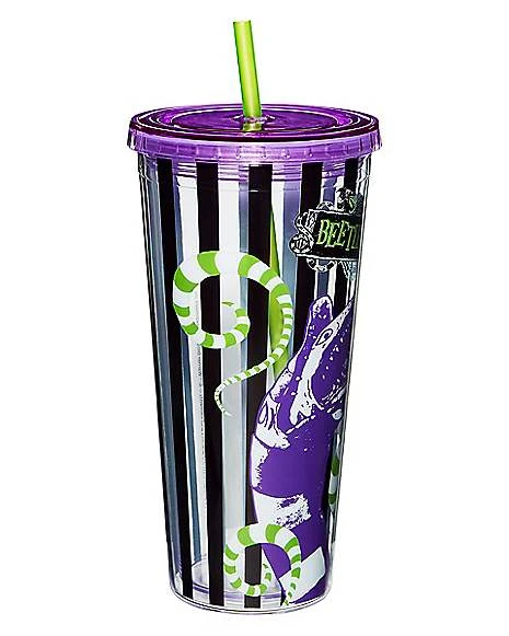 It’s easy to work up a thirst while eating all of that Halloween candy! Fill this Beetlejuice tumbler with your favorite beverage and keep the fun going all day long. With an included straw and lid, this Beetlejuice tumbler is a breeze to carry around town while you collect tricks and treats!