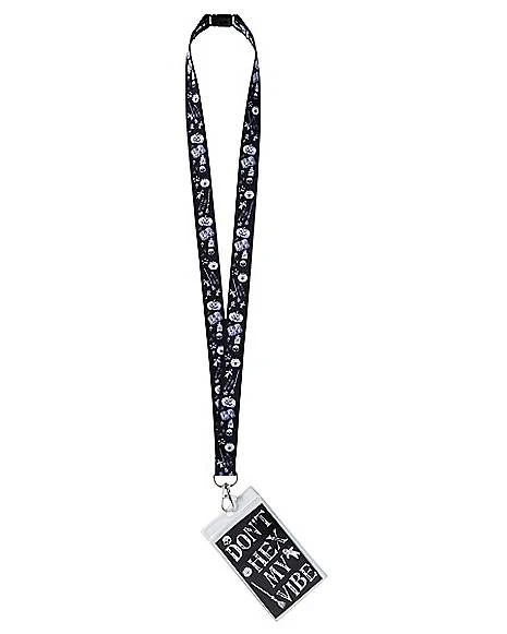Let everyone know you’ve got a dark side when you carry your ID and keys in this Don’t Hex My Vibe lanyard. This fun black-and-white has decorations along its strap for added style.
