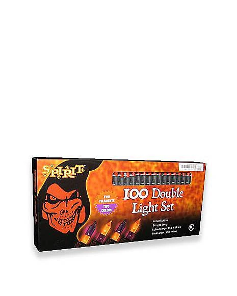 Light up any Halloween party with these bright purple and orange decorative lights! These charming Halloween lights allow you to trim your haunted house or mystic garden with the trademark festive colors of Halloween night. Combine several sets, or double the fun with 100 Purple and Orange Double Light Set.