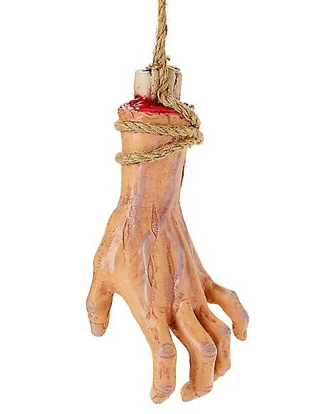 Go for the gore factor when you place this Hanging Hand decoration in your doorway! With its bloody wrist and injured hand hanging from a rope, this scary decoration is the perfect way to get all the screams this Halloween.