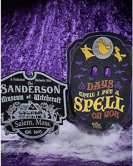 You’ll never forget how many days are left until Halloween once you add this officially licensed Hocus Pocus Halloween Countdown Sign to your home decor. This Hocus Pocus sign is the perfect way to get your home ready for Halloween and you’re sure to get a compliment from any Hocus Pocus fan who notices it.Â