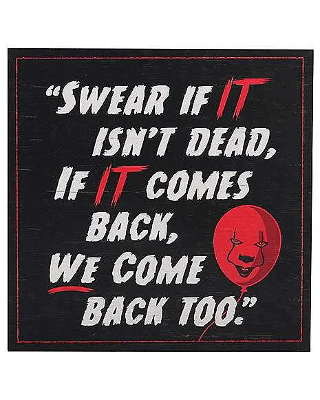 You’ll always be reminded of one of your favorite scenes from It when you hang this It Swear Sign in your home. We swear that you’ll love having this sign in your home to add some horror vibes just in time for Halloween.Â