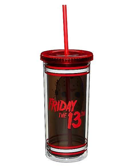 Screaming and running away from a killer all night can sure make you thirsty! Quench your thirst this Halloween with this officially licensed Jason Voorhess Jersey Cup with Straw and you’ll never have to worry about Jason catching you!Â