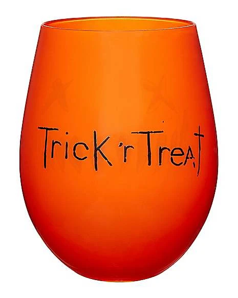 Celebrate your favorite horror movie with every sip from this official Trick ‘r Treat Pumpkin Stemless Glass! This fun orange glass is perfect for serving beverages to your guests at Halloween or any time, or enjoy every sip yourself.