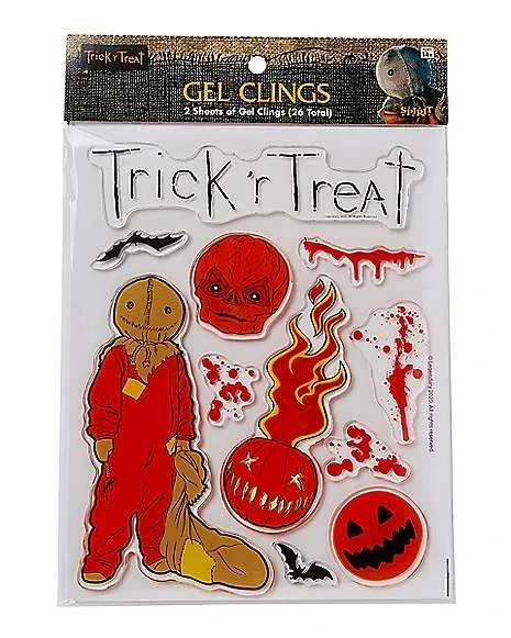 Get ready for the thrills and chills of Halloween with these Sam Trick ‘r Treat Gel Clings! This pack of gel window clings features two sheets of stick-on decorations for a total of 26 Sam-approved graphics. Sam’s Halloween rules, blood stains, and bats are just a few of the dazzling decorations included among these Trick ‘r Treat gel clings!