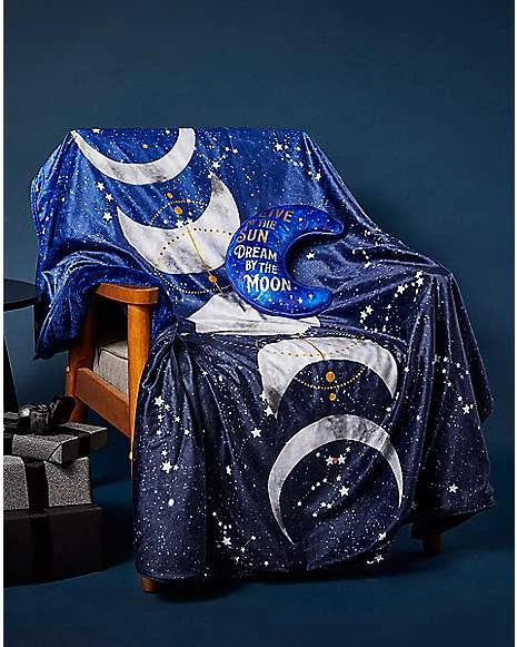 Watch the phases of the moon with this super comfy fleece blanket. Go star gazing without ever gettiing up off the couch.Â